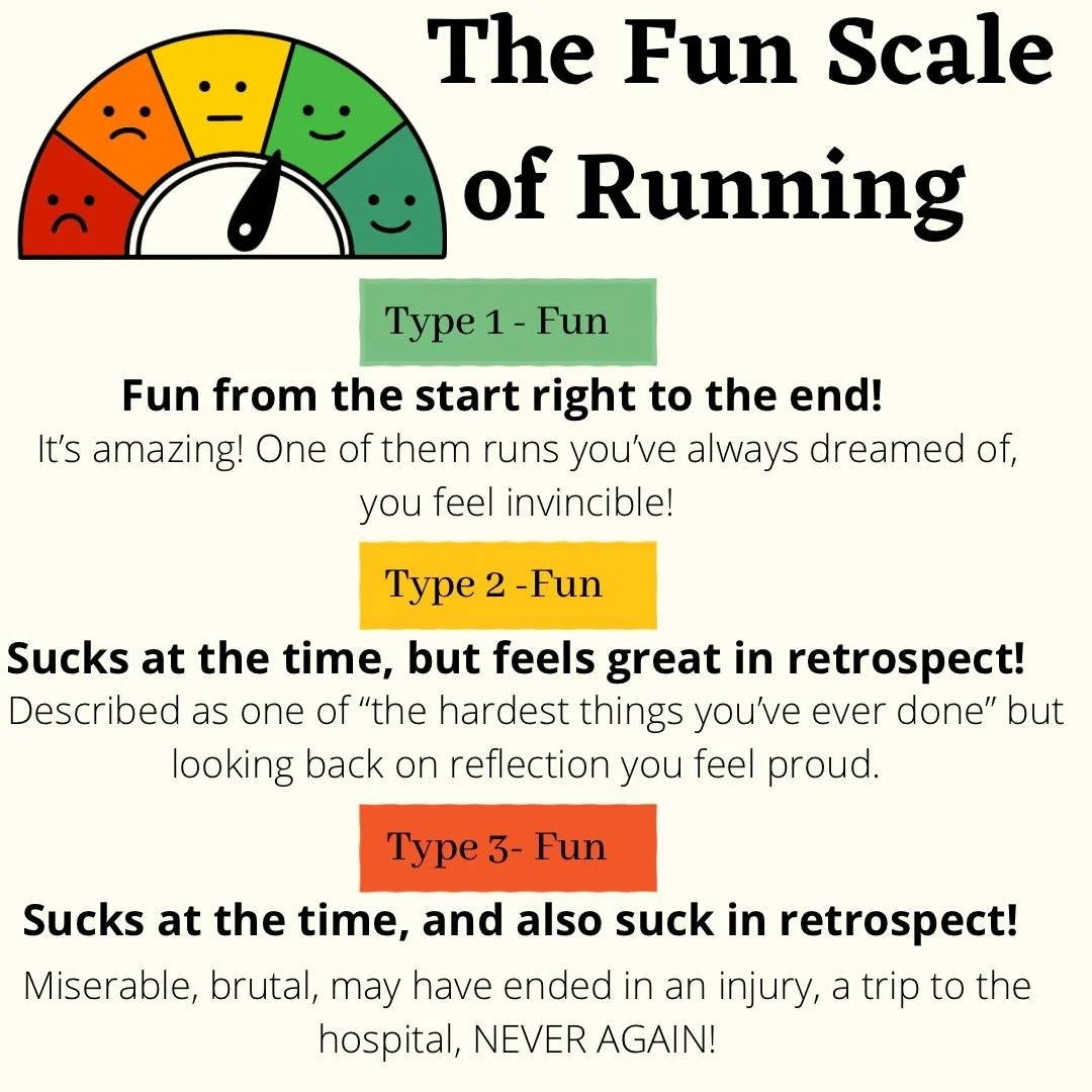 I didn’t know there were different types of fun, I just thought you either had fun or you didn’t. I’ve had plenty of runs and races where I had fun running them, laughing along the way with friends, playing aeroplanes going down the hills or just soaking up the atmosphere as the crowds shout out your name.